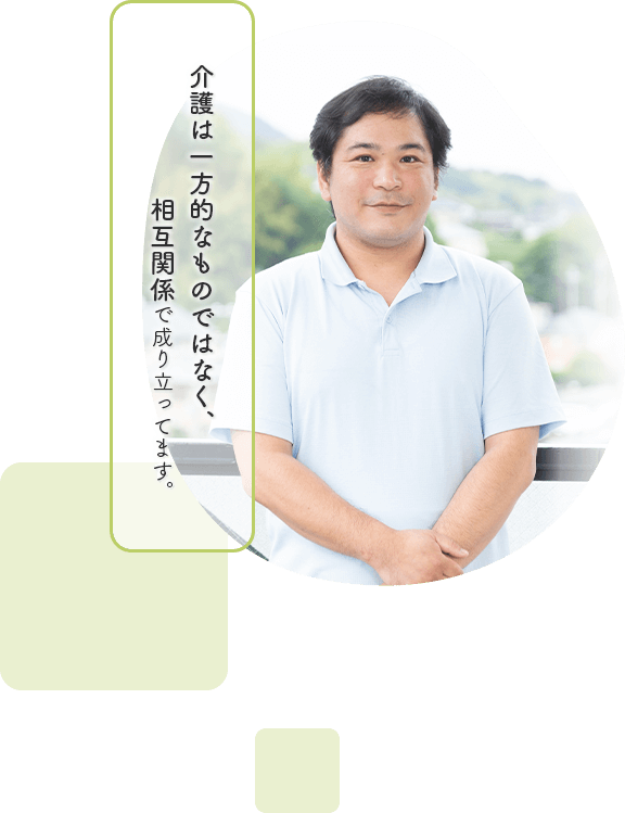 人と人、心と心の結びつきを大切に、利用者さんに寄り添っていきたいです。